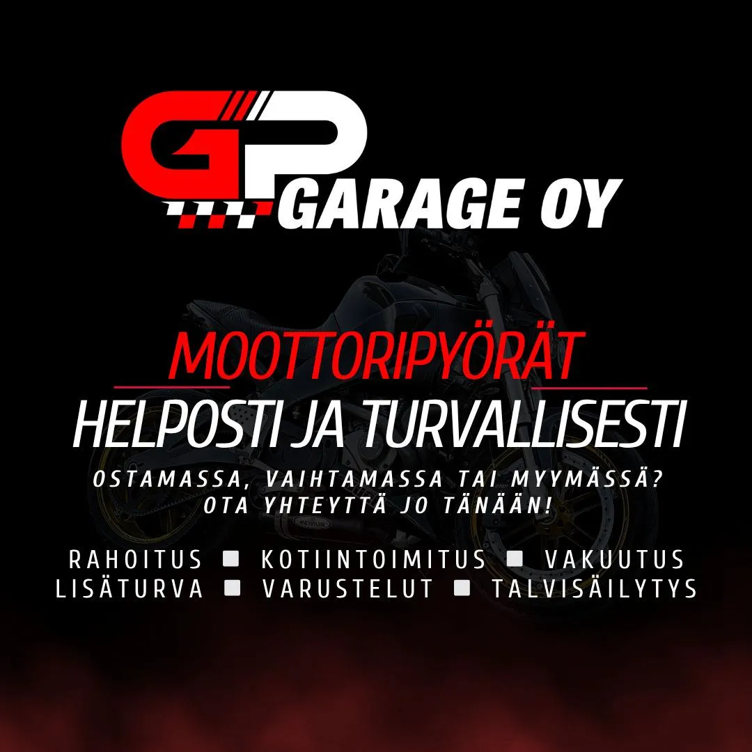 GP Garagen myyntivarasto on nyt talvihinnoiteltu - juuri nyt on paras hetki hankkia tämä moottoripyörä. Hyödynnä rahoituskampanja: valikoituihin prätkiin rahoitus alkaen vain 1,99% + kulut, rajoitetun ajan. Kysy tämän moottoripyörän tarkka korkotarjous jo tänään!