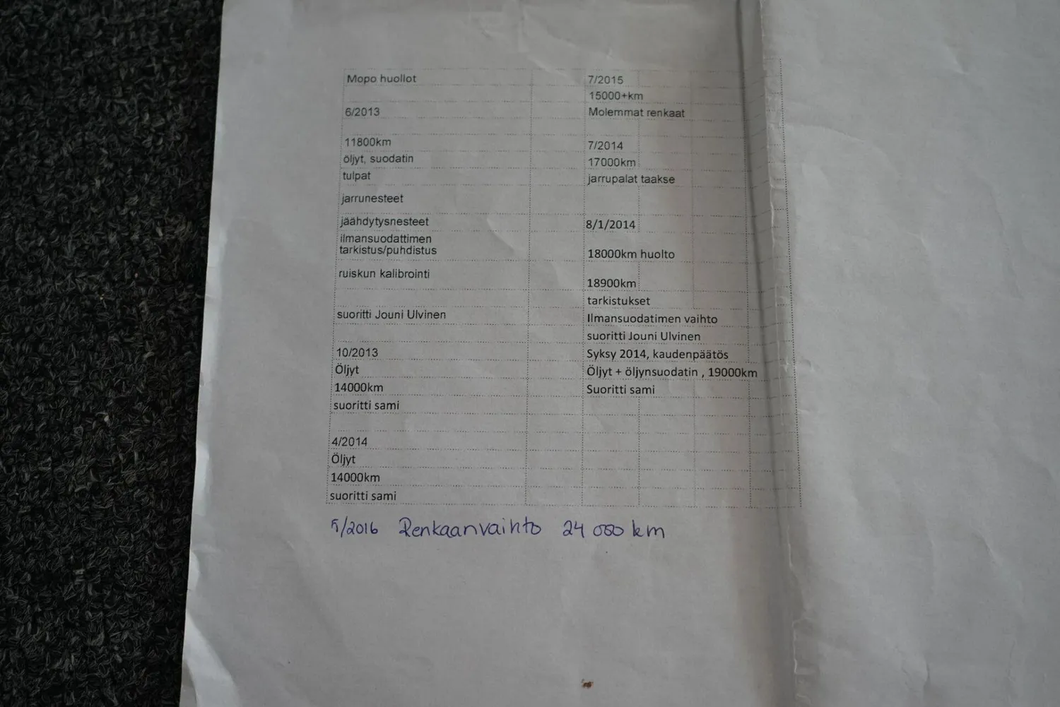 | Edellinen katsastus | |